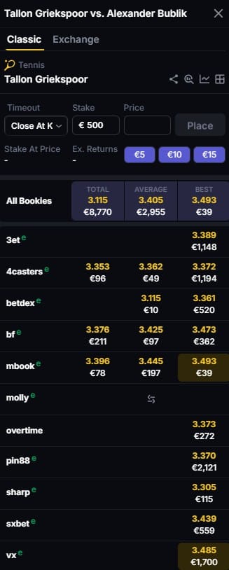 If you’re a serious tennis bettor—or a serious bettor in any sport—and you're still using regular bookmakers, switching to a broker is the single best thing you can do for your long-term results. Better odds, no limitations, higher limits — it all adds up.