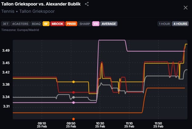 And this is another useful feature — you can also see how the odds have evolved over time across all bookmakers, which helps you spot line movements: